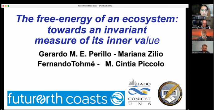 Keynote presentations were delivered by Prof. Mike Elliott, vice-chair of Future Earth Coasts, and Prof. Gerardo Perillo, FEC Academician and director of FEC IPO Argentina. Prof. Elliott advocated for an integrated model that combines natural and social sciences, governance, and management to effectively assess and manage human activities in marine environments. He proposed a unified model distinguishing ecosystem services from societal goods and benefits, aiming to enhance marine environmental management.