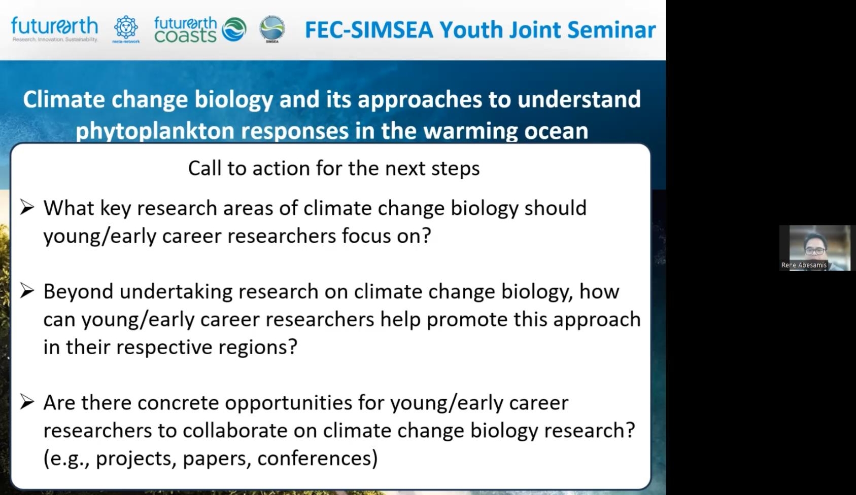 The FEC–SIMSEA Youth Joint Seminar, held on 18 August 2025, brought together early-career researchers, students, and marine scientists across Asia and Oceania to explore how climate change biology informs our understanding of phytoplankton responses to warming oceans.