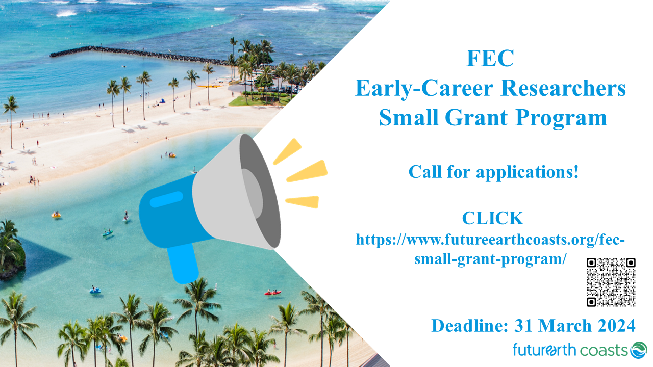 Future Earth Coasts (FEC) is a global sustainability, research and innovation network that promotes knowledge sharing and action towards implementing our vision for healthy oceans and coasts for a just and environmentally sustainable future. It is first and foremost a platform to integrate communities of science and society to co-design methodologies and approaches for the co-production of knowledge that will lead to more sustainable practices of use and development of the world’s coastal zones.