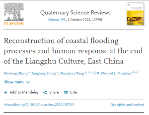 Zhang, W., Zheng, T., Wang, Z.*, M.E. Meadows, 2022. Reconstruction of coastal flooding processes and human response at the end of the Liangzhu Culture, East China. Quaternary Science Reviews 293, 107705.